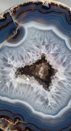 Macro shooting of natural mineral rock specimen - agate with chalcedony crystals on agate background