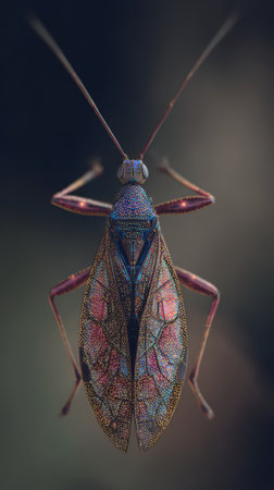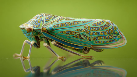 Close up of a vibrant insect showcasing intricate details, vivid colors, and captivating textures ideal for nature and science illustrations