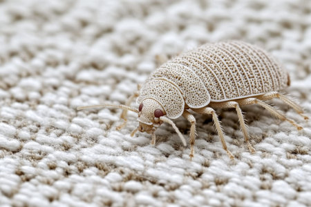 Generated imageBedbug Close up of Cimex hemipterus - bed bug on bed background, generated by AI. High quality photo