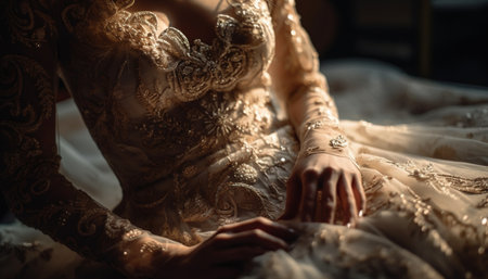The bride hand holding gold jewelry exudes elegance and sensuality generated by artificial intelligence