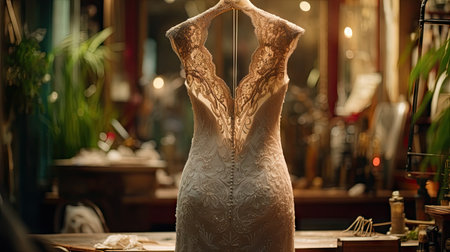 mannequin wearing a custom-made dress with lace details, created with generative ai