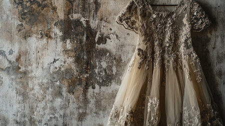 This image features a vintage lace dress displayed on a mannequin in soft light, capturing timeless elegance and artistic beauty, perfect for fashion enthusiasts.