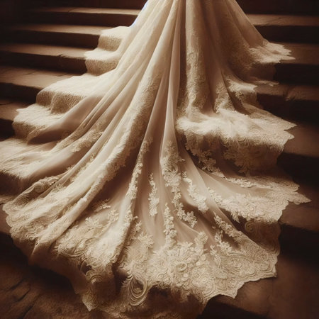Elegant Wedding Dress Detail With Intricate Lace and Beading in Soft Lighting