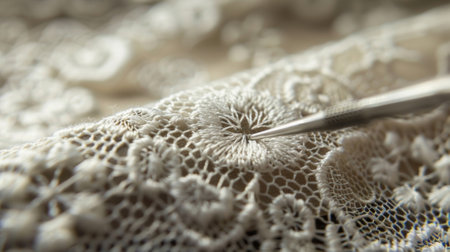 An AI generated illustration of Closeup view of white lace fabric draped on a flat surface
