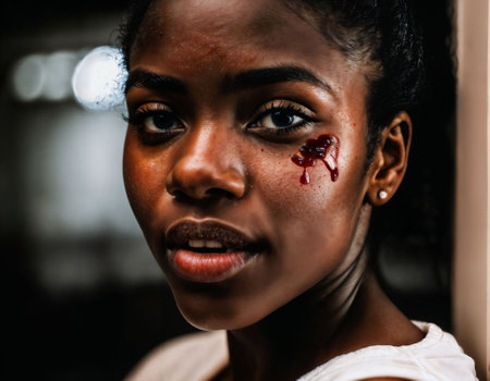 portrait of young woman with wounds on her face, domestic violence concept