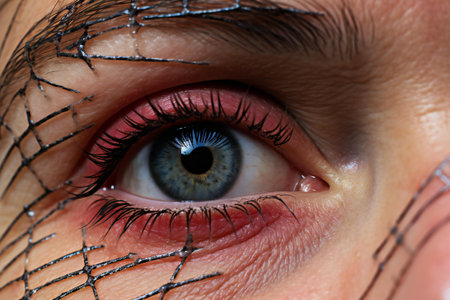Close-up of a woman's eye with spider net on it