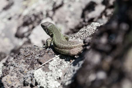 Sand lizard having a short rest and a sunbathe on the rocks.