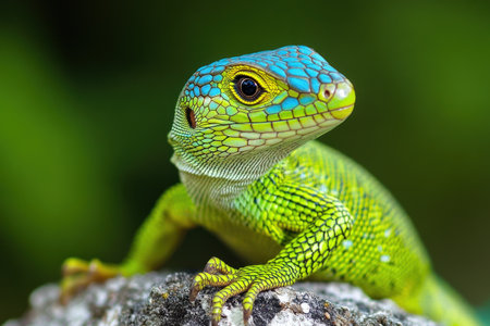 This image features a captivating lizard with intricate scales and vibrant colors, perfect for showcasing wildlife and nature in photography or educational material.