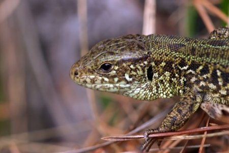 Closeup of young sand lizard (Lacerta agilis)