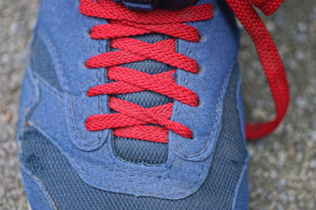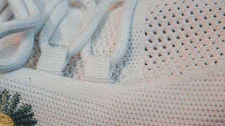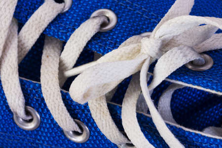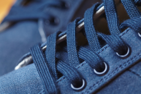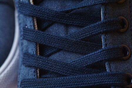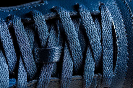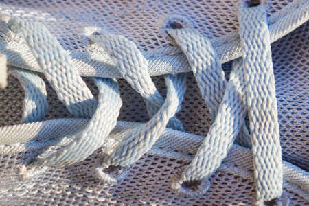 Close up of detail shoelaces on the shoes, macro