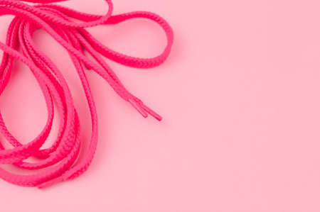 Pink bootlaces on the background copy space