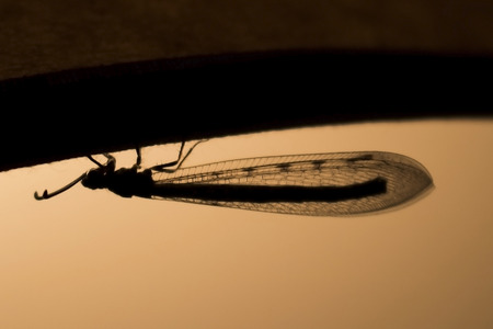 Profile Silhouette of Lace Wing Insect with Tiny Detail in Wings