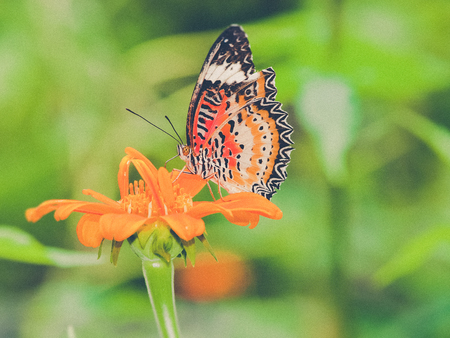 A beautiful butterfly sitting in the flower (Vintage filter effect used)