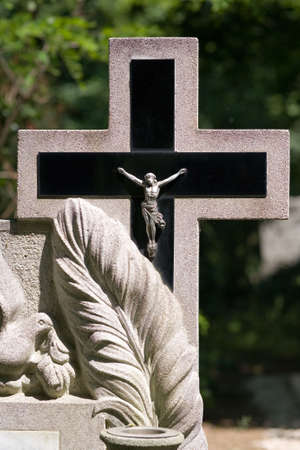 tombstone with cross in the graveyard