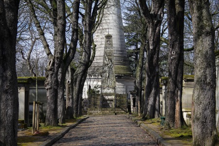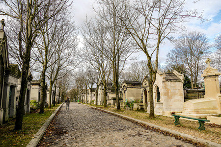 PARIS, FRANCE -APRIL 4, 2018: Pere Lachaise Cemetery is the largest cemetery in the city of Paris