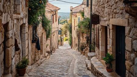 A narrow street among old stone houses