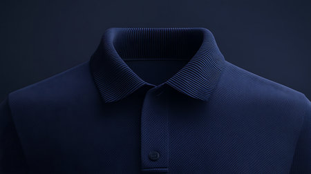 Explore the elegance of a textured navy polo shirt in a modern studio setting.