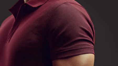 A burgundy polo shirt mockup, a side view shot focusing on the sleeve and texture.