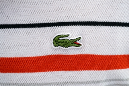 Lacoste Logo On A White Shirt With Red And Black Stripes