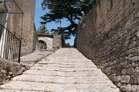 stones stairs in alley village of Bonnieux in Luberon France South