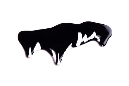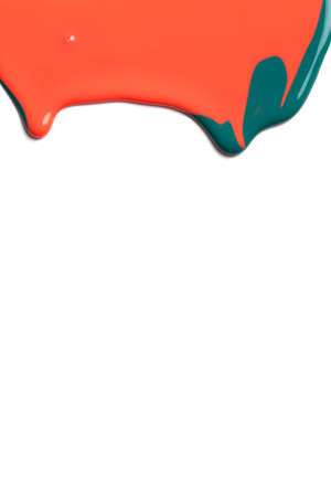 beautiful drip paint close up on white isolated background. drip red mother of pearl lacquer paint
