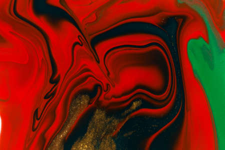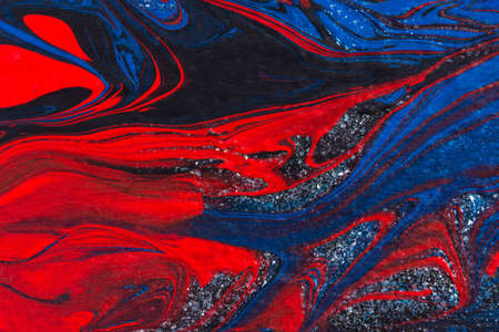 Red, black, blue acrylic fluid art, abstract creative Christmas background. Artistic bright futuristic background. Dynamic lines, water movement, splash. Design of holiday cards. Marble trendy texture