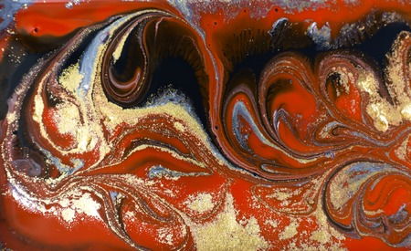 Red, black and gold marble fluid texture.