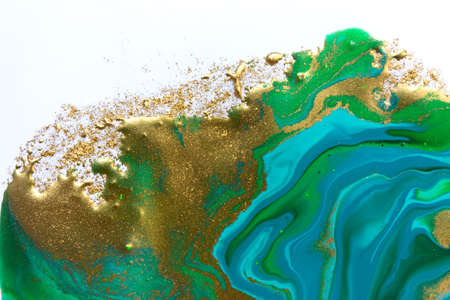 art photography of abstract marbleized effect background with white, gold and green creative colors. Beautiful paint.