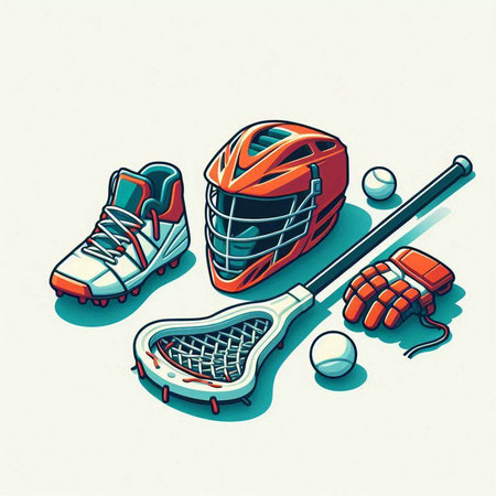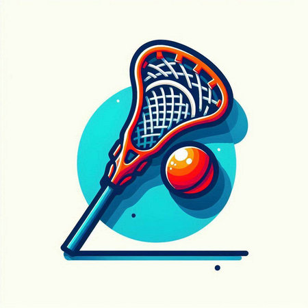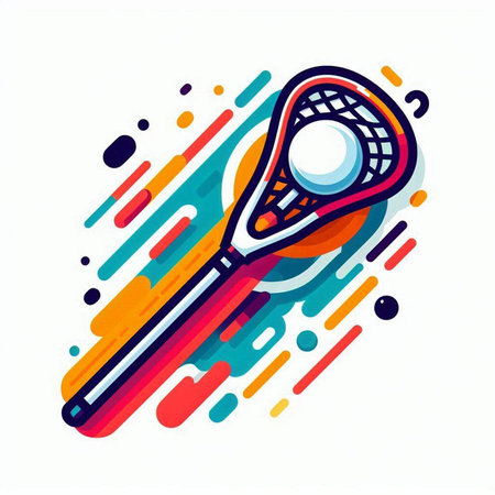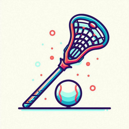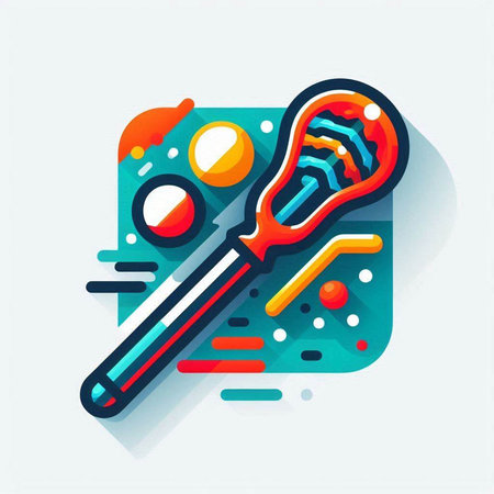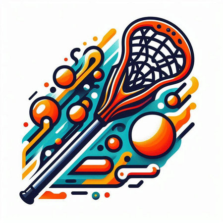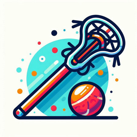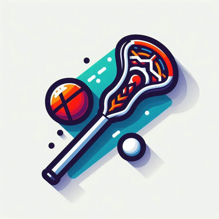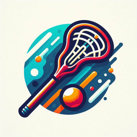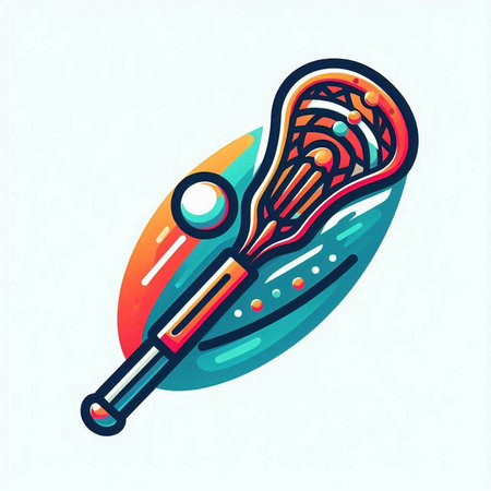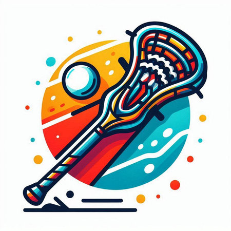 Vector illustration of a lacrosse stick and ball on a colorful background