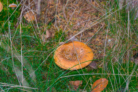 Lactarius deliciosus - edible mushroom. Fungus in the natural environment. English: saffron milk cap, red pine mushroom