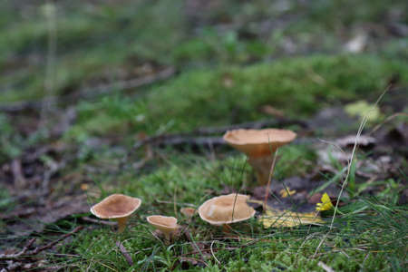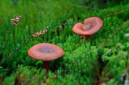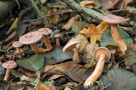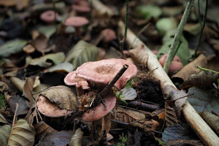 Mushrooms growing in the autumn forest. (Lactarius refus).