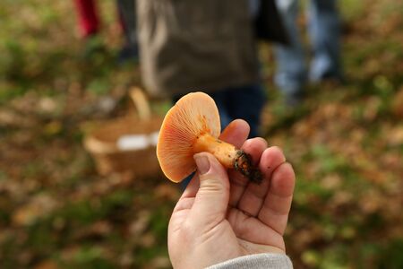 Lactarius deliciosus caught in pine forest. Munilla, La Rioja.