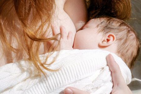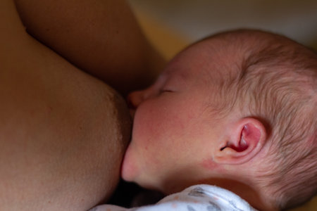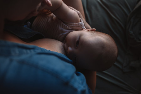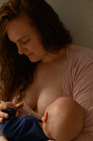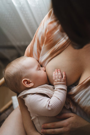 A tender moment of a mother breastfeeding her newborn baby, showing the bond between mother and child. The image highlights gentle care and nurturing touch, reflecting maternal love