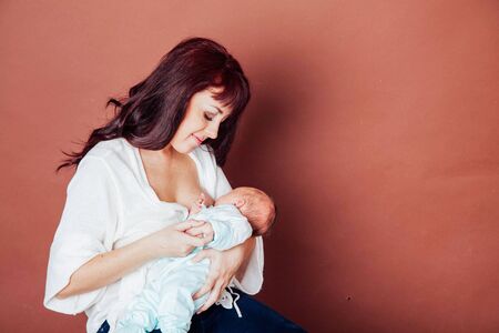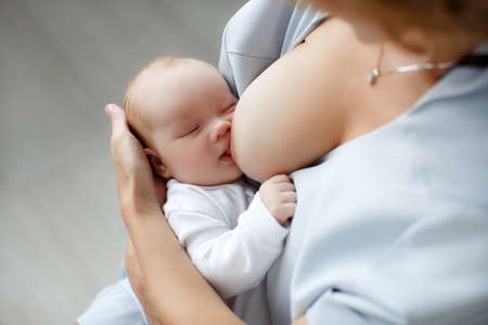 Mother breastfeeding her baby. Mother feeding baby newborn. Mom breast feeding baby hungry baby boy. her baby boy