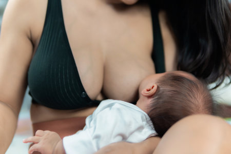 A baby peacefully nurses, finding comfort and love in their mothers warm embrace