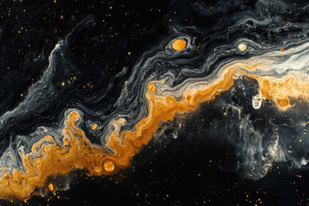 This abstract background features dark fluid patterns with bubbles, showcasing a unique artistic design perfect for creative projects and visual inspiration.