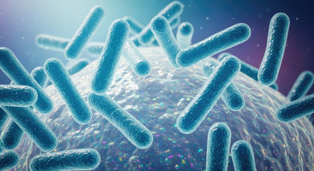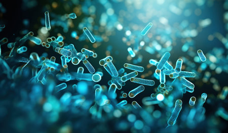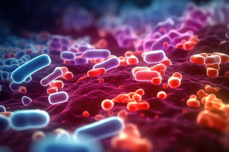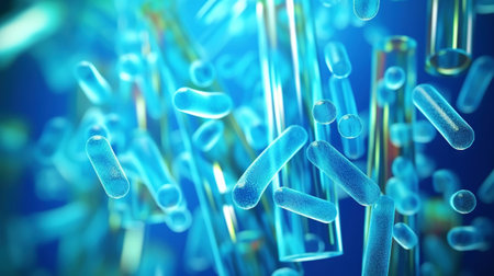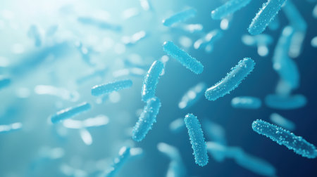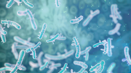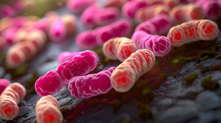 Microscopic probiotic bacteria for digestive health and medical treatment in biology and science