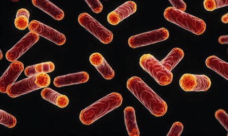 Scientific image of bacteria Bacteroides, Gram-negative anaerobic bacterium, one of the major components of normal microbiome of human intestine, 3D illustration. B. fragilis and other Bacteroides