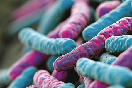 Microscopic View of Probiotic Bacteria, Lactobacillus and Bifidobacterium, 3D Render.