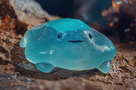 Closeup of a cute aqua blue jelly fish on a rocky surface