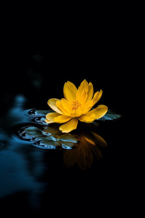 A stunning purple lotus flower with delicate petals, captured in exquisite detail against a dark, reflective surface, highlighting its serene beauty and vibrant color.