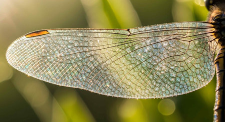 Macro photo of a dragonfly's wings with bokeh