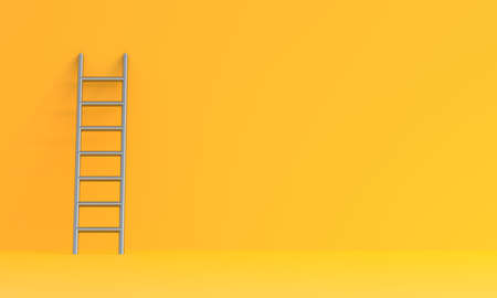 Ladder on a yellow wall background. Leadership minimal creative concept. 3d rendering