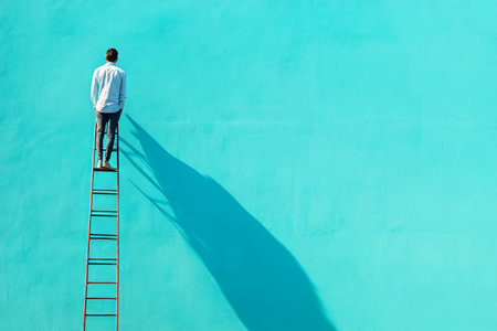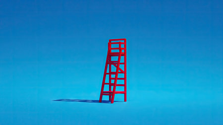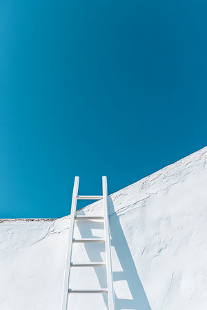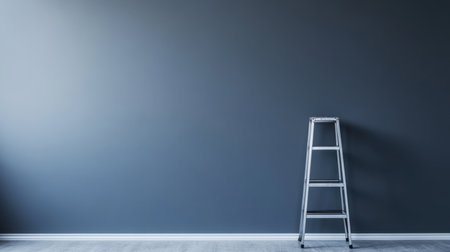 ladder on bright blue colored wall, in the style of dark blue background, concept minimalism, by ai generative