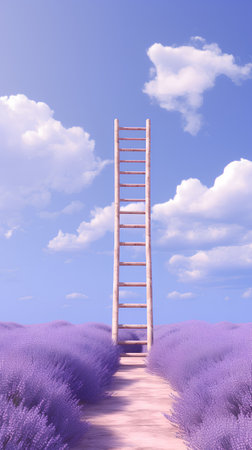 Metaphorical representation of a ladder reaching upwards symbolizing progress and development. Concept Symbolism, Progress, Ladder, Development, Metaphor
