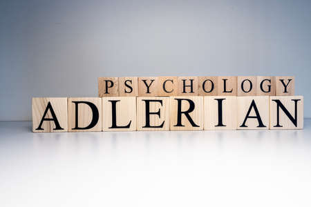 Adlerian psychology text from wooden cubes. The term psychology profession.