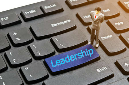 Business concept: computer keyboard with word Leadership and miniature business people.