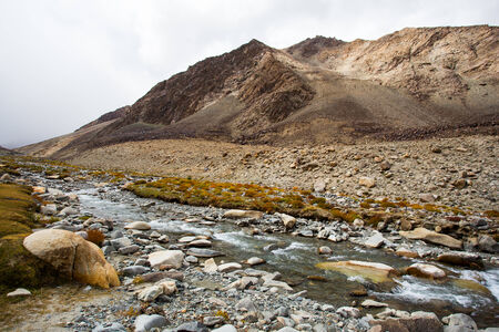 Mountain stream flowing down the beautiful valley in the Karakorum near Khaplu in Central Karakorum National Park