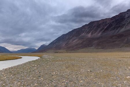 view from Indian himalayas - mountain and river valley - way to Parang La and Takling la passes, passes from Ladakh to Himachal Pradesh - India