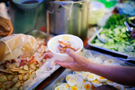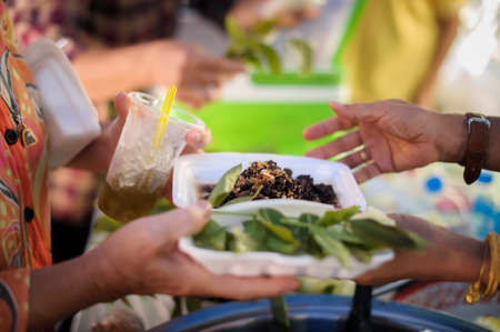The hands of poor have been aided by charity food to alleviate hunger: The concept of social sharing